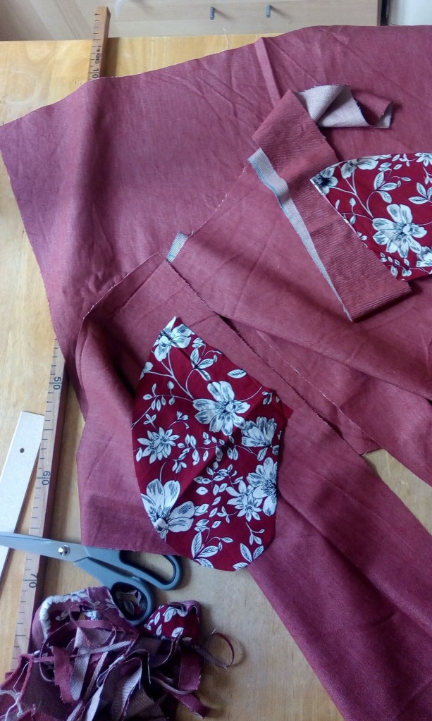 The material is a raspberry coloured jeans I found at Les Coupons de Saint Pierre. Les Coupons is definitely my favourite shop, they have piles of three meters ‘coupons’ in all kind of colours and materials, you just need time and patience to dig through them to find some pure gems. Also if you spend more than 20 euros they give you a nice reusable purple bag!