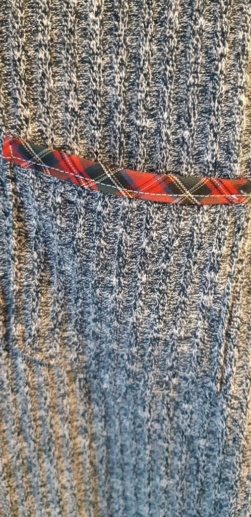 Anyway, after long queues of masked people, foggy glasses and getting rained on, I found this cotton tartan and decided to go with it. Yes, I know synthetic fibres should go with synthetic fibres but this was a desperate situation (and I love tartan).