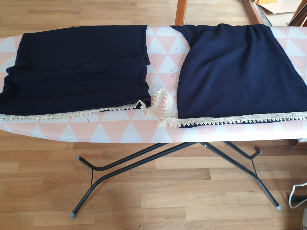 I decided to trim the hem of the trousers with this cream colored lace to give it a holiday vibe. I brought this lace for 1 euro at Mes Folles des Seours, gosh I miss hunting for bargains in their piles of buttons, zippers and lace! Next time I go to Paris I’m going with an empty suitcase and spending half a salary in that shop!